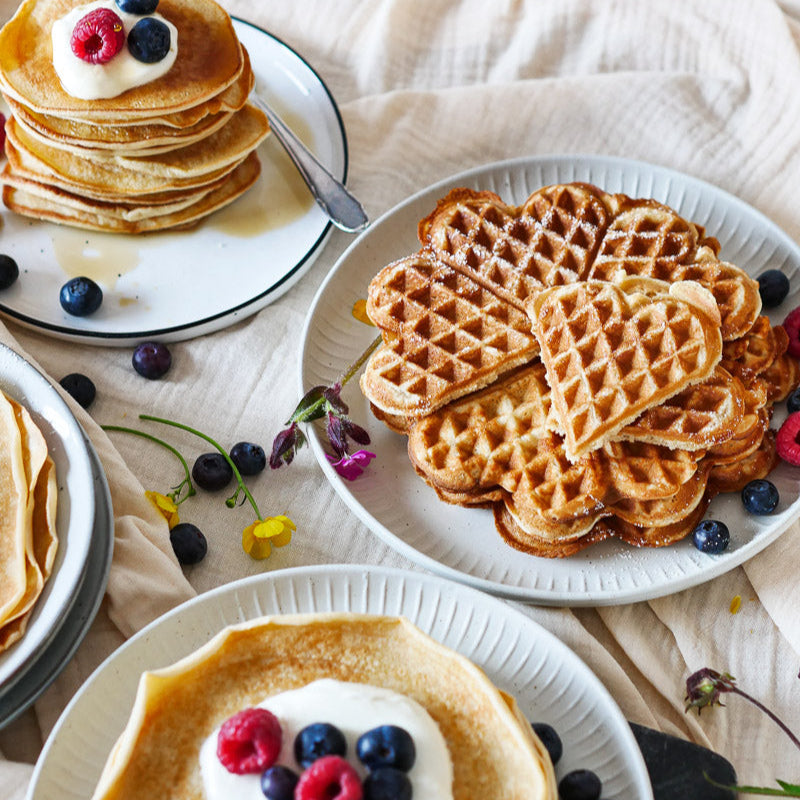 Waffles & Pancakes - Gluten-free baking mix. Ingredients: Cassava flour, potato flour*, baking powder (tapioca starch*, sodium carbonate, cream of tartar, lemon juice powder*, guar gum*), sea salt (*organically grown)
